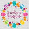 • Grab a basket and go on a hunt for this Easter women's racerback tank top! Featuring the phrase: "Sunshine & Springtime" in purple script inside a wreath of colorful flowers and Easter eggs that represent the iconic princesses Rapunzel, Tiana, Belle, and Cinderella across the front.