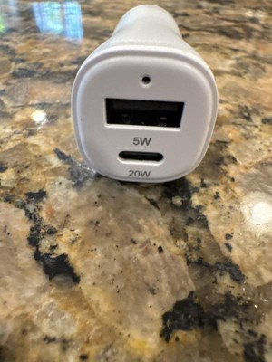 Compact and portable car phone charger with a 5 watt USB-A and 20 watt USB-C port that fits easily into a car cigarette lighter port. Another great and affordable target dealworthy product that we own!