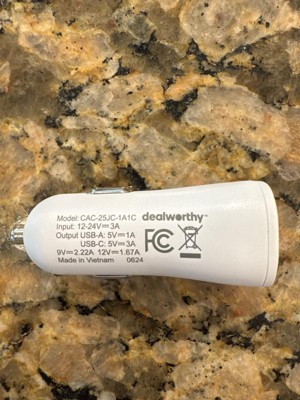 2-Port 25W Car Charger - dealworthy™ White: USB & USB-C Car Adapter
