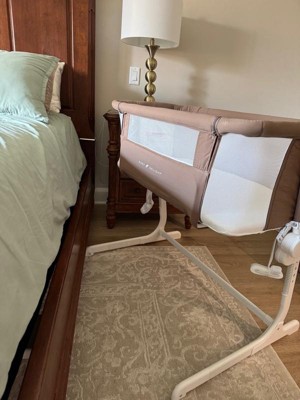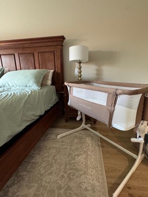[This review was collected as part of a promotion.] Why didn’t I have this for my first baby?! I had no clue how much of a pain it would be to reach over a regular bassinet to calm the baby. This bassinet has different settings so you can use it at all times of the day. You can connect it to the bed which is GREAT! … you can also put up the wall so you can use it as a normal bassinet around the house i definitely recommend since it is multifunctional and very sturdy!