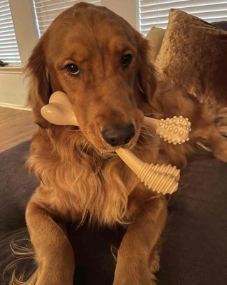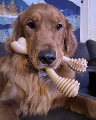 My dog has strong jaws and it’s hard to find quality toys that are all natural that he cannot destroy. My pup has not put the Betterbone down since opening the package. He knew the box had something for him and he’s been chewing away. I love that it’s made with food grade ingredients and is nylon and BPA free and doesn’t splinter. It’s really big at nine inches and each end is textured and rigid so it will help clean his teeth while occupying his time. I received an incentive to write this review.