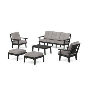 POLYWOOD 6pc Prairie Lounge Sofa Outdoor Patio Conversation Set Black/Gray Mist