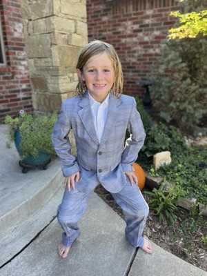 Get your kid ready for any occasion in these Plaid Suit Pants from Cat & Jack™. Made of cotton and recycled polyester, these mid-rise pants feature a fly button and zipper for ease of wear. Tailored in a classic fit, these straight-leg pants create a sleek look.