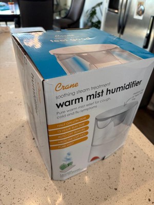 Crane Warm Mist Humidifier with Soothing Steam Treatment - 0.5gal: Room Size 300-500 Sq. Ft., No Filter Needed, Electric
