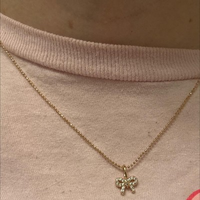 14K Gold Plated Brass Pave Cubic Zirconia Bow Necklace - A New Day™ Gold: Nickel-Free, 19" with Extender