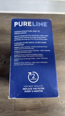 This is the PureLine 5 Stage pitcher filter. The pack comes with three cartridges. The stages include netting, mesh and carbon. Unfortunately it did not fit in my Brita pitcher so it seems it’s only compatible for PureLine products.