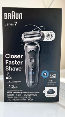 [This review was collected as part of a promotion.] The Braun Series 7 is an impressive shaving device. By far this is the smoothest shave I have gotten from an electric shaver. The 360° Flex is very comfortable and adjust to the contours of my face. I really like the 3 different modes for shaving with gentle, standard, and turbo. The foil shaver gives a smooth and close shave while the middle trimmer ensures and longer stubble gets trimmed. The additional attachment for the micro trimmer is a nice addition to help keep the sideburns neat and clean. To ensure a clean unit I utilize the SmartCare Center hub to rinse and remove any debris after my shave session. The shaver is overall very comfortable to hold for longer sessions and does not nick or cut my facial areas. The best electric shaver for my face and it gives me a clean shave even after a few days of stubble growth. Reliable and comfortable.