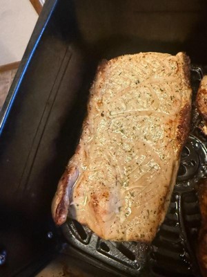 [This review was collected as part of a promotion.] The Tyson seasoned steakhouse pork griller steak is ready to cook on the grill, oven or air fry. The pork is very juicy and marinated with garlic and onion, which is delicious