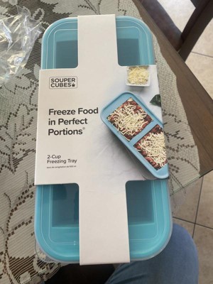 Souper Cubes 2c Food Freezing Tray with Lid Aqua Blue: Silicone Freezer Tray, Stackable, Dishwasher-Safe