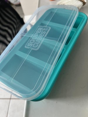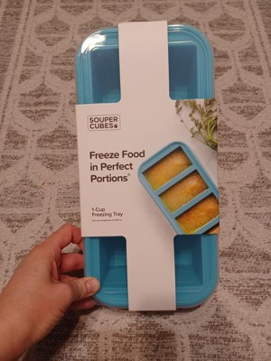 Souper Cubes Food Freezing Tray with Lid Aqua Blue: Silicone Freezer Tray, Stackable, Dishwasher & Oven Safe
