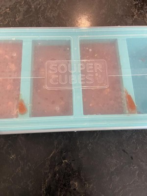 This Souper Cubes Food Freezing Tray with Lid Aqua Blue is pretty awesome because a lot of liquids/foods fit inside of these spaces in the tray. When I have made too much extra liquid/food, I have poured it into this tray for the next time that I want to eat the food again. The food that is in the tray comes out easily each time I need to get it out because the tray is made out of silicone. The tray and the cover are dishwasher safe, the tray is oven safe up to 415° F, the lid is airtight so it eliminates freezer odor, each section of the tray takes up to 1-cup of liquids/food.
