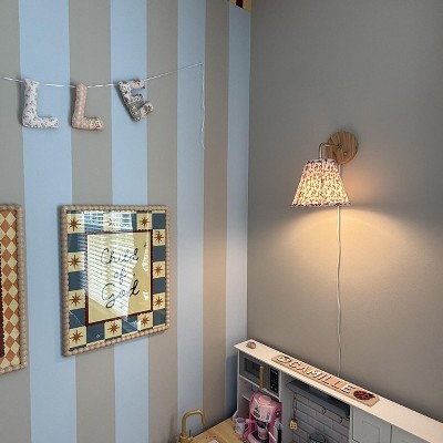 This is such a cute sconce. It’s so versatile that you don’t need to hard wire it. The cord is a bit short and I would prefer a more neutral color, but it’s super functional. The shade is an adorable ditsy floral and is well-made. It’s nice to have the on/off switch accessible. I haven’t decided where exactly I’ll place it, but can really go anywhere!