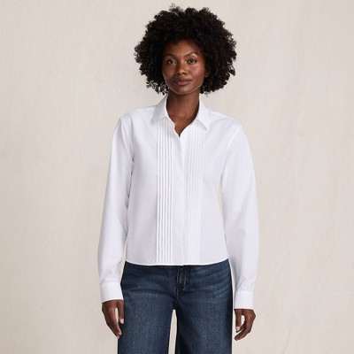Lands' End Women's Poplin Tie Sleeve Shirt - Large - White