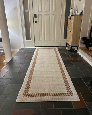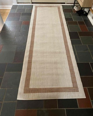 This indoor outdoor rug fit perfectly for an entryway rug into our house. The black and white weaving of the rug was very nice. I also loved the white border that surrounded the rug. The rug is good quality so it will be great in the high traffic area that I put it in. It was a perfect size for an entry rug. I felt that the price was very reasonable for the quality of this rug. It could easily be used outside as well. I received an incentive to write this review.