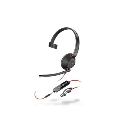 Poly Blackwire 5210 Monaural USB-C Headset + 3.5mm Plug + USB-C/A Adapter - Microsoft Teams Certification - Mono - USB Type C, Mini-phone (3.5mm)
