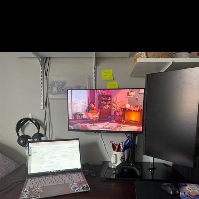 Just got this yesterday, and the monitors work really really well for the price. I’m an occasional gamer, and wanted this setup to be able to see my friend’s streams while playing my own games as well. The base, while big, is necessary for the balance of the two monitors. The monitors are also very light, which made for easy assembly. I personally took on of the extensions off of the arms to make on of my monitors as flush to the wall as I could, and it worked really well. This is a perfect setup for any beginner or just someone who doesn’t really need the fancy specs of other monitors. The stand/monitors can also be used with other monitors/stands as well, so if you need to upgrade, it’s super easy to. Matte finish on the screens so there is little to no glare. I have my second monitor off at the moment, but it does work really well. The base is also a heavy glass, so no need to worry about it tilting or falling.