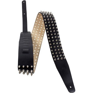 The Perri's Silver Studded guitar strap provides serious musicians with an eye-catching way to carry their instrument in comfort and style. 'll appreciate the studded black leather construction, which gives the strap a stylish, rock-and-roll look while the adjustable length lets find the perfect fit for guitar. Compatible with acoustic, electric and bass guitars, this durable strap attaches securely to keep instrument safe during transport and performance. When want to make a statement with gear, the Perri's Silver Studded guitar strap delivers.