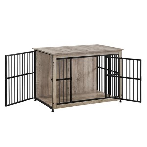 Feandrea Dog Crate Furniture, Side End Table, Modern Kennel for Dogs Indoor up to 70 lb, Heavy-Duty Dog Cage Heather Greige
