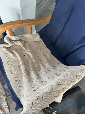 Bleu La La 100% Luxury Cotton Heart Knit Swaddle Blanket for Blanket for Newborn and Infant Boys and Girls - Denim Blue