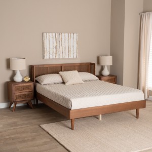 Baxton Studio Rina Mid-Century Modern Ash Walnut Finished Wood 3-Piece Queen Size Bedroom Set with Synthetic Rattan