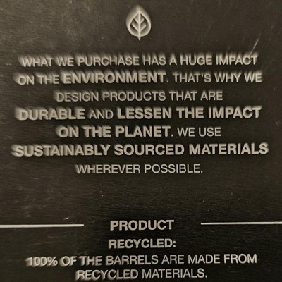 Trying to be more mindful of my purchases and how it impacts our environment. These pens are durable and write very smooth! They are also made by 100 percent recycled materials (the barrels) as well as the packaging! They are cute and they write smooth with no bleeding noticed. I would buy these again when the time comes to replace. I also like they are retractable bc I used pens frequently at work and throw in my lab coat. Nice to not have pen marks in my clothes :)