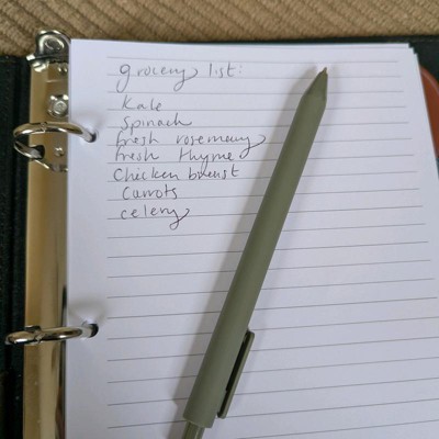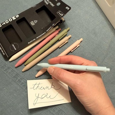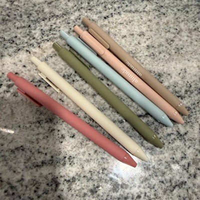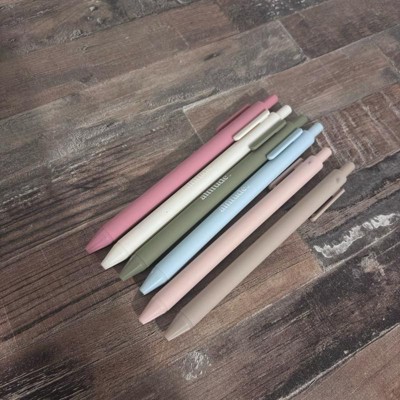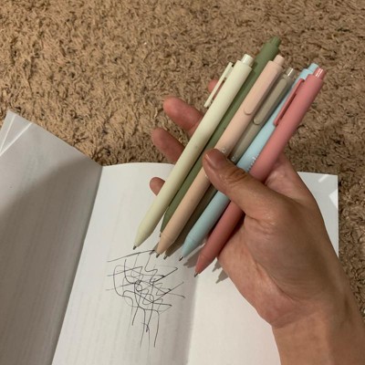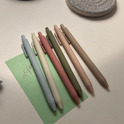 I love these pens! Not only did they write well, but they feel nice while writing. It’s a pack of six pens and they are all super cute colors. They all right with black ink, but the outside of the pens are almost like muted pastel colors. They write really nicely and the pens themselves are soft yet have a little bit of weight to them.These are my new favorites!