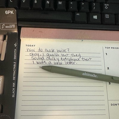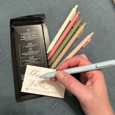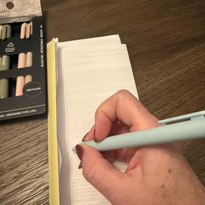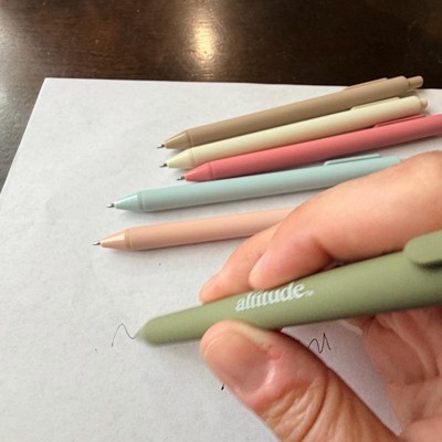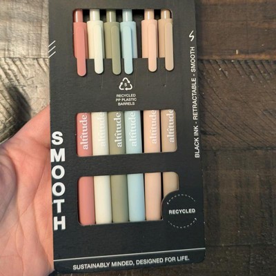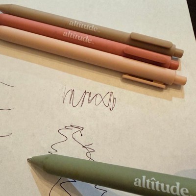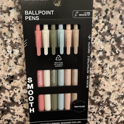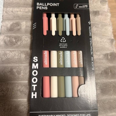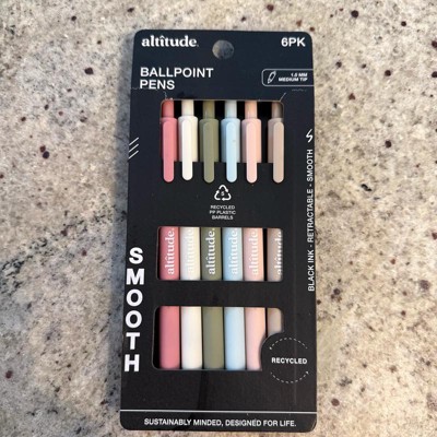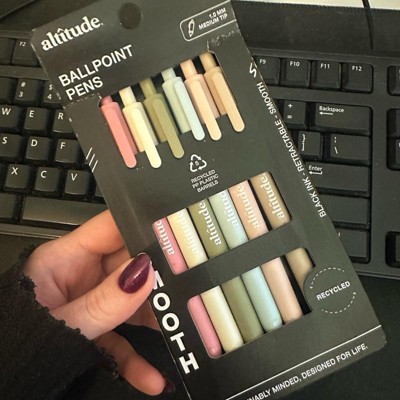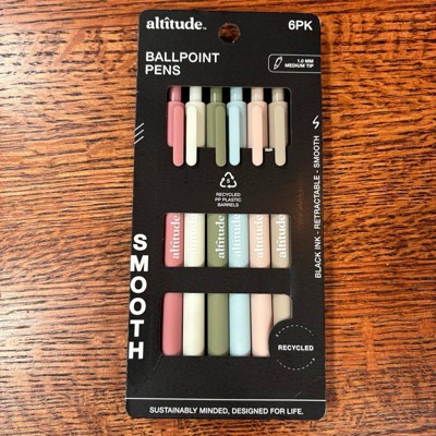 I really wanted to love these Altitude pens, especially given the great muted colors and the fact that they use recycled plastic. Unfortunately, the writing experience just doesn't live up to the "smooth" promise on the packaging. While the pens don't feel scratchy and I didn't have to apply extra pressure to get them to work, the ink flow is very inconsistent. Instead of a clean, fluid line, I found the ink tends to blot or skip in places, which makes my notes look a bit messy. It's a shame because the design and sustainability aspect are spot on, but for a daily ballpoint, I need a much more reliable and even line than these provide.