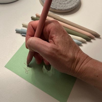 Assorted pastel colors give a calming vibe. Very instagram worthy. Easy to use and smooth. Bulk of the pen is a silicone like matte surface, comfy and not shiny. Was thinking I got pastel ink palette, but it’s all black ink. Slightly confusing. No plastic packaging I’d great. Nice little gift for eco minded ppl.