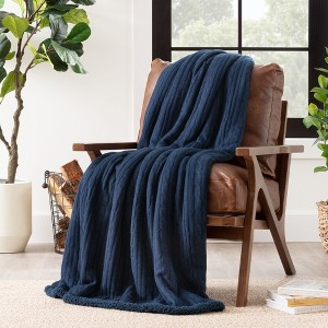 Stay cozy and stylish with Chanasya's Cable Knit Throw Blanket with Reversible Faux Shearling Fleece. Its classic acrylic cable knit texture pattern design and soft Faux Shearling Fleece material add a touch of elegance to any space. With a variety of solid colors to choose from, it's easy to match with your personal style or add a pop of color and texture to your furniture. Machine washable for easy cleaning.