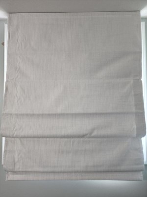 [This review was collected as part of a promotion.] The Sun Zero Somerton textured roman shade feels and looks even better than pictured. I was looking for a true white shade that wasn't boring which is hard to find when looking for white window treatments. Despite the shade being white it truly blocks the light. The fabric is thick and looks elegant hung over my kitchen window.