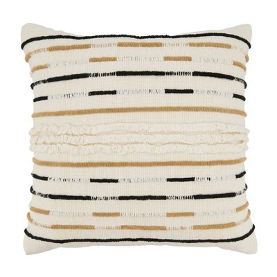 Each stitch of this pillow is stitched by hand in a vertical stripe pattern along the flange border of the pillow with raw edges. The Hand Quilted Border Cotton Pillow is a perfect calming moment for any room needing some relaxation. Details20" x 20"Color: Beige ground with a Navy stitch.Embroidery is handmade and should be handled with care & pride.Back side is solid Beige.Front & Back side: 100% Cotton (washed) Concealed zipper closure on back side. Hand washing or a delicate cycle with like colored fabrics recommended. Hang to Dry.Made in India Pillows are available in 3 options: Pillow Cover Only, with a Down Alternative insert, or with a Down Insert