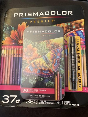 [This review was collected as part of a promotion.] The Prismacolor Premier 36 ct is amazing! The quality of these colored pencils cannot be beat. I do a lot of sketching and I've tried so many different kinds of colored pencils, from super cheap to crazy expensive. These are high-grade and very durable, they don't break easily. Not only does this set come with a wide color variety of pencils, they also come with a chisel art marker too! The tin that these come in is gorgeous as well. Prismacolor makes such quality products and I will continue to be a loyal user!