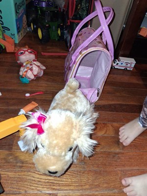 [This review was collected as part of a promotion.] My daughter loves her doggy, especially the carrying case and brush for it. She sleeps with it, carries it up and downstairs. I actually wish the flap that as the zipper would have the Velcro on the other side or it was rolled the other side. The zipper is good, I don’t think anyone could get hurt from it unless they weren’t careful