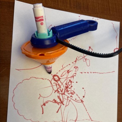 Do not buy this ridiculous toy!!! It’s complicated and does not work as simply as it seems. If you are able to put it together you’ll be surprised that the top does not actually spin with the marker as intended - it does not spin w marker it basically falls indefinitely no fun designs on paper in fact a big mess w markers all over adults and kids hands. lol. Terrible. Crayola who’s designing this please stop just make markers k thanks. I would have had more fun burning my $6. What’s up with toys now days they’re just junk that lose the appeal after a minute. Lesson learned better off playing in the woods and pretending make believe.