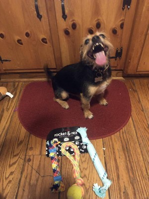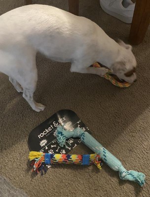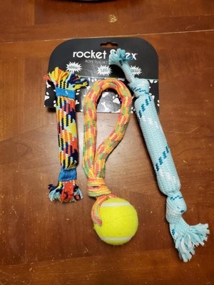 The Rocket & Rex Dog Rope Toy Set - 3pk is a great set of toys that has a variety of styles/type of toys for dogs. Our dog loved them, however: did not last long with our Cane Corso. They didn't survive long before they weren't in one piece