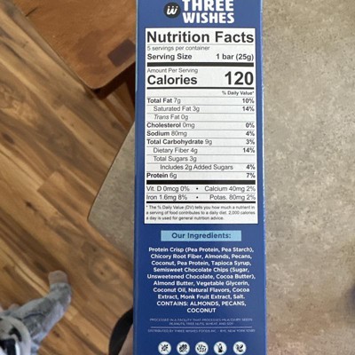 These chocolate chip granola bars by three wishes are just ok. I think this flavor is the best they offer but it’s still not that great. It’s pretty dry. I made the mistake of eating this in my car and the chocolate chips fell off and shattered into a powder when I tried to pick them up. Also you might not expect coconut in a chocolate chip granola but it’s overwhelmingly coconut flavored. I received an incentive to write this review.