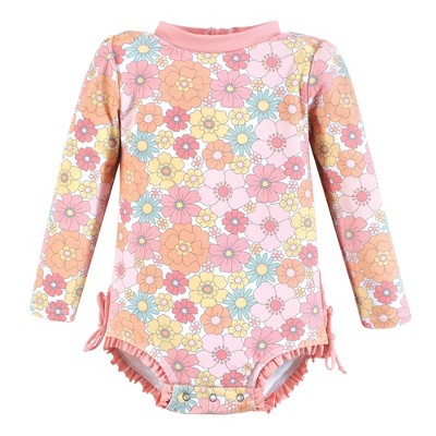 Hudson Baby Girls Rashguard Baby Swimsuit, Pink Palm