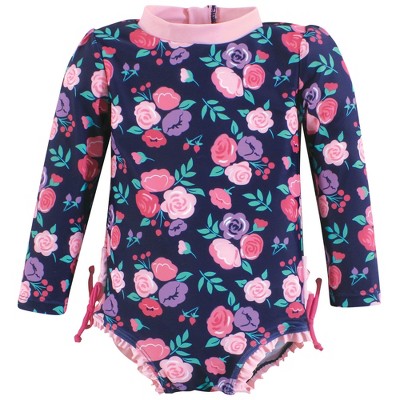 Hudson Baby Girls Rashguard Toddler Swimsuit, Navy Floral