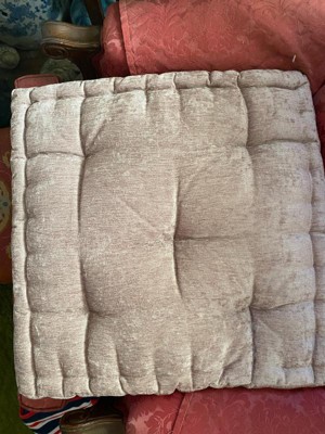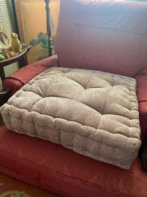 [This review was collected as part of a promotion.] Soft and comfortable Poly Chenille Square Floor Pillow Cushion. This cushion is perfect for meditating on or if needed a cop a squat like the old days. Mine is a soft gray color and luster from fabric nature. It has a tufted detailing with a scalloped edge design. It can easily be spot cleaned with a mild detergent. It's 100% polyester filling and chenille covered. It's also OEKO-TEX certified which means chemical free. 20in. W X 20in. L X 5in. H