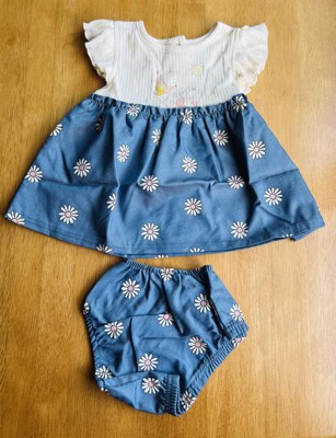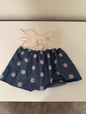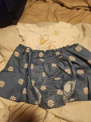 Disney Winnie the Pooh Piglet Floral Newborn Baby Girls Chambray Dress and Diaper Cover Outfit Set Blue 0-3 Months