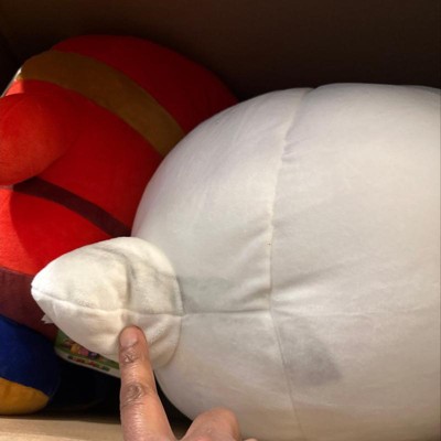 This was a gift I was really looking forward to giving my son for Christmas. I was super excited to see Boo had arrived however that quickly turned disappoint. I quickly noticed that there were dirty marks covering the white fabric. Whoever packaged the plush did not take the time to put a bag or some other type of protection around him. I am super frustrated with how this has turned out. Unfortunately, I am having to send back this purchase. The one plus is he is extremely soft and a good size for kids to snuggle with.