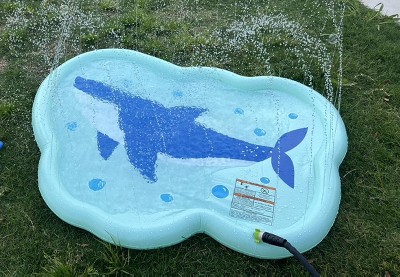 This is a fun way to cool off. It was a little confusing as the box said inflate and attach hose. It does not need to be inflated with air. It will inflate the outer ring with water to en enter into the sprinkler holes to cause a spray The pad was not slippery and it was larger then expected.