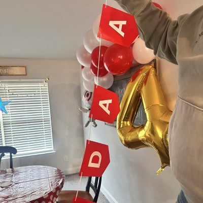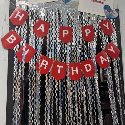 This is simple and target vibe birthday banner. The size is small compare to banner but perfect for table or small room. The string is little light and could have been stronger. Easy to setup . The red colour is not bright but just the perfect target red which I really like. The back of the banner is blank and no colour which i thought if was red would have been better