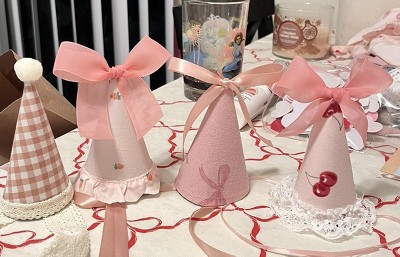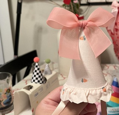 bought these mini hats and DIYed them into girly hats for my daughters stuffed animals. they’re really small.