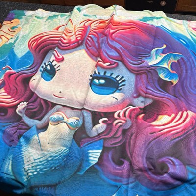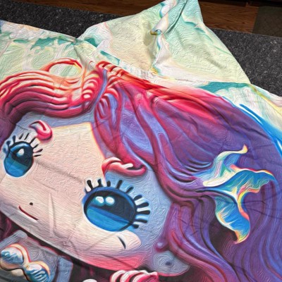 This mermaid hooded beach towel is what I was hoping for. The microfiber material is soft and dries very fast which is perfect after swimming. It doesn’t stay heavy or soggy like cotton towels and the sand shakes right off. The size is crazy huge so it can wrap around adults and a kid and an adult! Hood is a nice touch for drying hair and staying warm after being in the water. The print is cute and very colorful, and it folds down to very small so doesn’t take a lot of room. Price is fair for this sort of towel and for how big it is. Highly recommend!