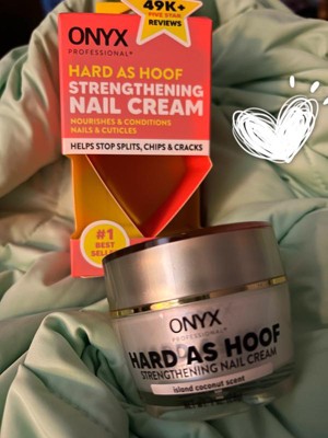 I love this ONYX nail cream! Hard As Hoof is by far a nail game changer for brittle, weak or frail nails. Apply 3 times a day no rinse or as needed. Smooth and easy with a coconut fragrance. It works and smells amazing! I see a difference in my nails in a short amount of time! 🙌🏻 Highly recommend!