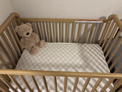 2pk Fitted Jersey Playard Sheets - Cream Checks - Cloud Island™: Standard Crib Size, Shapes Pattern, 95% Cotton