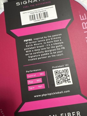 PBPRO Signature Carbon Fiber Pink Pickleball Paddle arrived in its on black carrying bag. I absolutely love the vibrant pink color. The design is really nice and the paddle feels like high quality. I had fun playing with it and it was so easy to use.