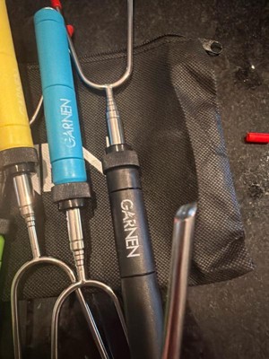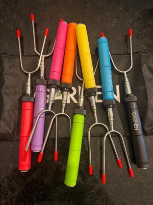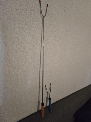 [This review was collected as part of a promotion.] Excellent roasting sticks! They are perfect for camping. They are telescopic so they are very compact (about 10 inches) and the extend to 34 inches. Fully extended they are beefy enough to roast 2 bun length dogs. They come with a nice little carry case to toss in with your camping gear. And it comes in a variety of colors so everyone in the family can pick their favorite.