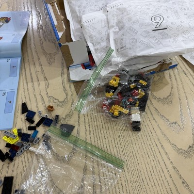 I bought this set in the target store. When i opened it, two bags were already used and put back in the zip lock bag. Few missing pieces, so my kid could not complete it.